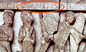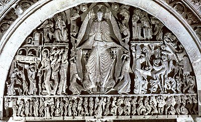 | Most medieval works are anonymous. With the exception of architects, most medieval artists were considered artisans or crafts persons. This tympanum is unique since we know the name of the sculptor --Gislebertus-- who "signed" his work with unusual medieval pride. (This pride in one's art will be common in the Renaissance.) | ||